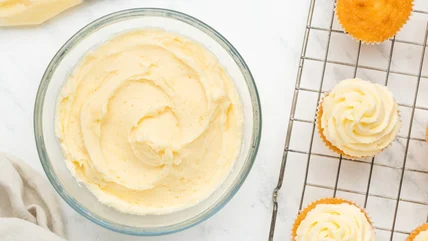 Recipe developer, Catherine Brookes, brings us this recipe for traditional American buttercream frosting. With just 4 ingredients and only 15 minutes, this recipe couldn't be any easier. Unlike Swiss meringue buttercream, which is made with egg whites, this buttercream is made without eggs.