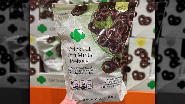 Notably, SheKnows says that the wholesale retailer has had Thin Mints Almonds around for a long time, but these pretzels are a more recent addition. They might not scratch the precise same itch for fans of Girl Scout Samoas Cookies or Do-si-Dos (aka peanut butter sandwiches), but Thin Mints lovers are definitely going to be happy. These chocolate-covered pretzels capture the same cool mint, and rich chocolate flavors that Thin Mints lovers crave, but add a salty crunch as well with the underlying pretzel.