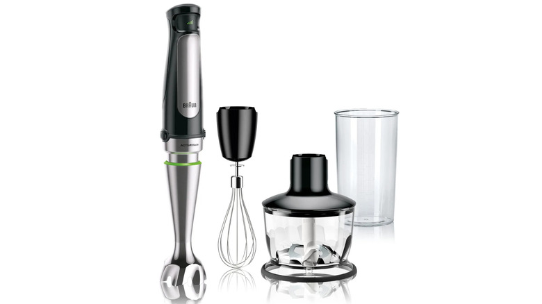 The blade attachments on this piece come equipped with splash control technology so that you don't end up spattered with soup or whatever else you're making in the kitchen. The set comes complete with a corded hand blender, an active blade blending wand, a 20-ounce BPA-free beaker, a two-cup chopper container, and a whisk attachment. Reviewed has praised this hand blender model for its easy ability to transition different attachments along with its three-year warranty. If you need more of a reason to pick this up then think of the possibilities, like salsa verde, chimichurri, homemade pesto, and custom vinaigrettes. There's an endless list of sauces, dressings, soups, and dips that you can whip up with a top-notch immersion blender like this, and if you're on the prowl for a hand blender that you can depend on for amazing results then look no further.