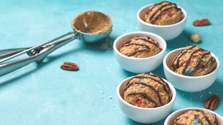 We all know we're not supposed to eat raw cookie dough, yet many of us have tried it at least once. Some might still regularly consume it. However, as explained by the Centers for Disease Control and Prevention, the raw eggs in a lot of raw cookie dough could carry food-poisoning germs such as Salmonella. Thankfully, baking kills those germs, and the cookie dough in frozen treats like ice cream has been treated to make it safe to eat, but what if you want some sweet dough that's neither hot nor cold?
