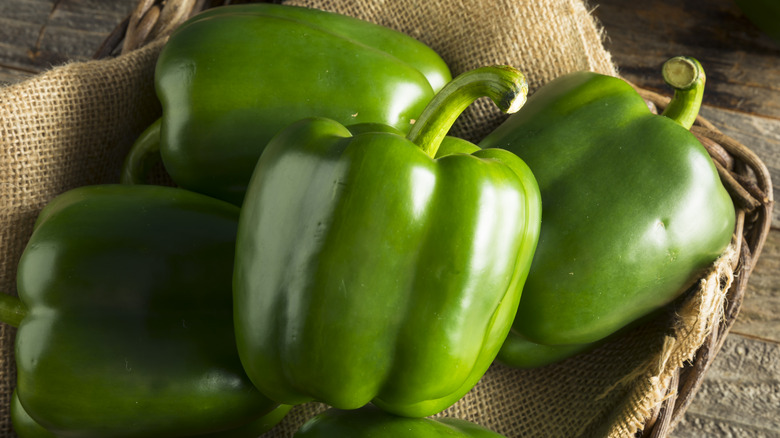 If you decide to give them a chance, green peppers are rich in iron and lutein, and contain more vitamin C by weight than oranges (per WebMD). If you can't do hot chilis, green peppers are a mild option that provides the same health benefits. Misfits Market explains that thorough cooking does mellow their bitterness. Green peppers are popularly paired with beef or chicken in fajitas, are found in Asian stir-fries, and can be stuffed with meat, grains, or legumes. So if you can stand the taste, unlike Duff Goldman, give peppers another chance.