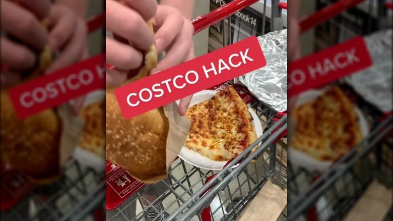 Though Costco's food court menu might be satisfactory as-is for most, some people seek out online "hacks" in order to invent something new. You can create your own root beer float with vanilla fro-yo and self-serve soda, a chili cheese dog with a cup of chili and a hot dog, or a Cinnamon Mocha Freeze by simply dipping a sweet churro into a mocha freeze drink (per Kitchn). And as Aisle of Shame notes, you can even get your Costco pizza delivered. One TikTok user shared their hack for combining a pizza slice with another food court classic, but some couldn't help but see the resemblance to a fictional food.