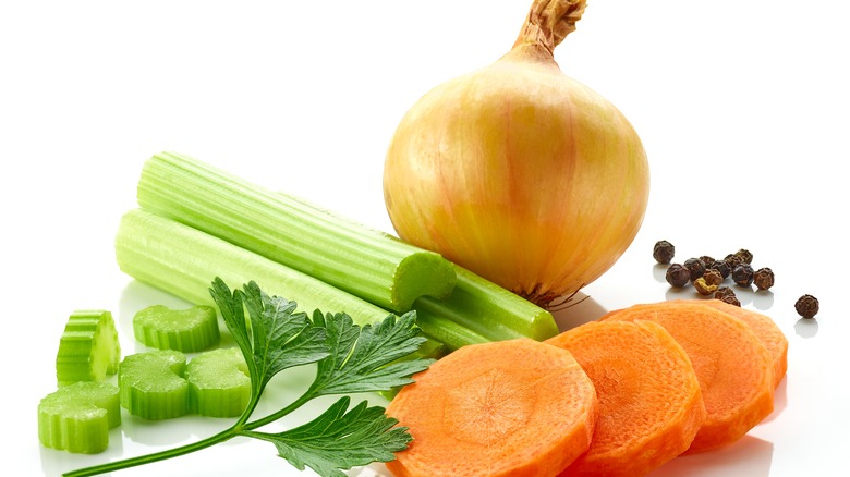 A fairly divisive vegetable, celery often gets labeled as tasteless. A single cup of this vegetable contains roughly 115 grams of water (via WebMD), which is likely the reason it gets branded as bland, but it also has a salty, almost spicy flavor that makes it interesting. In addition to its mildly salty flavor, celery also has a beautiful crunch that is great for adding a crispy element to homemade soups.