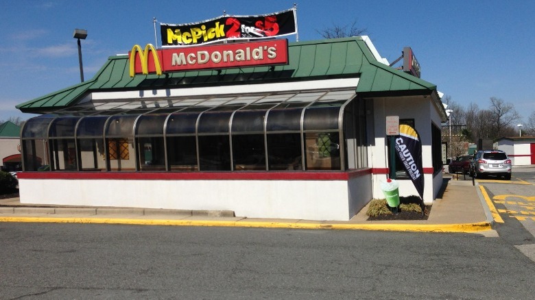 Taco Bell once sported a "Miami Vice"- Esque Memphis design of geometric shapes and neon colors (via Architectural Digest) rather than the ultra-modern interior of muted colors and digital ordering screens. Vox laments the "boring" design of modern-day McDonald's, harking back to the days of bright red and yellow theming and playful McDonaldland-themed interiors. In some cases, some fast-food restaurants still have their "retro" decor, as one user on Reddit found a Burger King that still has an interior right out of the late 1990s. While you could hold a debate on whether this is a case of modernization stripping away the character and charm these places had, the fact is that with time comes changes, and certain trends fade away, leaving only architectural fossils in their place.