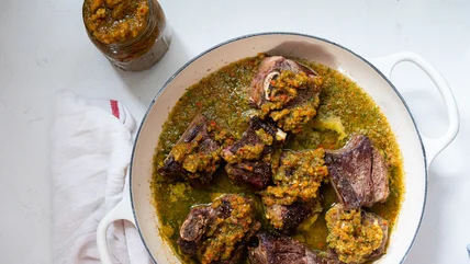 As to what to do with the finished sofrito, Musgrave says "This is used for a variety of Latin American stews, braises, and dishes," and goes on to explain that the dish shown in the photos is braised short ribs seasoned with sofrito. If you'd like some additional inspiration, you could also check out this Caribbean-inspired recipe for sofrito-style beans, or this one for baked snapper with sweet potatoes and sofrito.