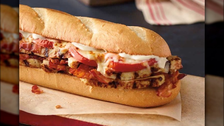 Marco's Pizza also has a few different sub options for people who are looking for a sandwich instead of a pizza. One of these sub items is the Chicken Club. It's a staple of many sandwich shops and pizzerias that offer subs, and Marco's Pizza sticks to the basics with its recipe. The Chicken Club consists of grilled chicken and bacon for the meats and is topped with tomatoes, mayonnaise, and Marco's signature three-cheese blend.