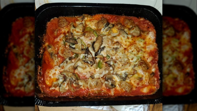 It is nearly impossible to rank these two separately because of how similar they taste. The All Meat pizza is true to its name, containing pepperoni, ham, Italian sausage, bacon, and Marco's signature sauce and three-cheese blend. Similarly, the All Meat pizza bowl, which, as its name implies, is a crustless pizza baked in a bowl, has the same meat toppings, sauce, and three-cheese blend, but is also topped with romesan seasoning, which is dehydrated vegetables, parmesan cheese, and bread crumbs.