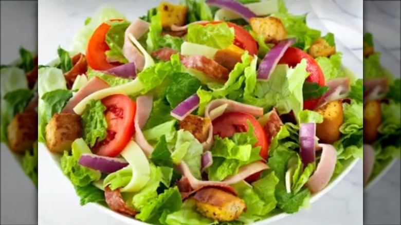 The Garden Salad, like the Hawaiian Chicken Pizza, is a hit-or-miss dish. The Garden Salad has Marco's fresh-cut lettuce blend as the base and is topped with cheddar cheese, black olives, onions, green peppers, sliced tomatoes, and croutons. The Garden Salad is one of the freshest salad options on the menu, with the perfect blend of vegetables and your choice of dressing to complete the dish. However, this type of salad, though relatively standard, is not for everyone — and it definitely does not compare to some of the other Marco's menu items.