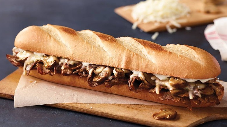The hot steak and melted cheese are mouthwatering as is, but when topped with mushrooms for some extra enhancement and mayonnaise to taste, the sub is taken from delicious to a craving. The Steak & Cheese Sub has a perfect blend of flavor and is a meat lover's dream. As far as classic subs go, this is another great example and is done with near-perfect execution by Marco's. If you're looking for a good sandwich to switch up your Marco's Pizza order, you cannot go wrong with the Steak & Cheese Sub.