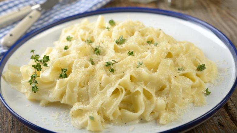 Creamy pasta dishes are front and center on American Italian restaurant menus like Olive Garden — but needless to say, Olive Garden doesn't exactly qualify as "authentic." According to food blog Devour, fettuccine Alfredo (named after its creator, Alfredo di Lelio) is not a traditional or popular dish in Italy. Restaurants in the U.S. tend to drench the long noodles with heavy sauces and too much cheese. In Italy, the versions are much lighter with an emphasis on simplicity, made with just butter and Parmesan. The original was invented in Rome in 1908. He made it for his wife, and they liked it so much that they added it to their own restaurant's menu.