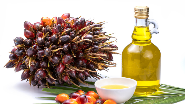 Palm oil is the most used oil worldwide, seeing that it is needed for countless different products ranging from cosmetics to pet food, cleaning supplies, and, of course, your favorite foods (via Conservation International). It is extracted from the fruit of the oil palm tree through a process that involves removing the fruit from the tree and then sterilizing it by steaming it. Then, the fruit is pressed to extract the oil, which can be further refined to remove impurities (per Oil Refinery Plant).