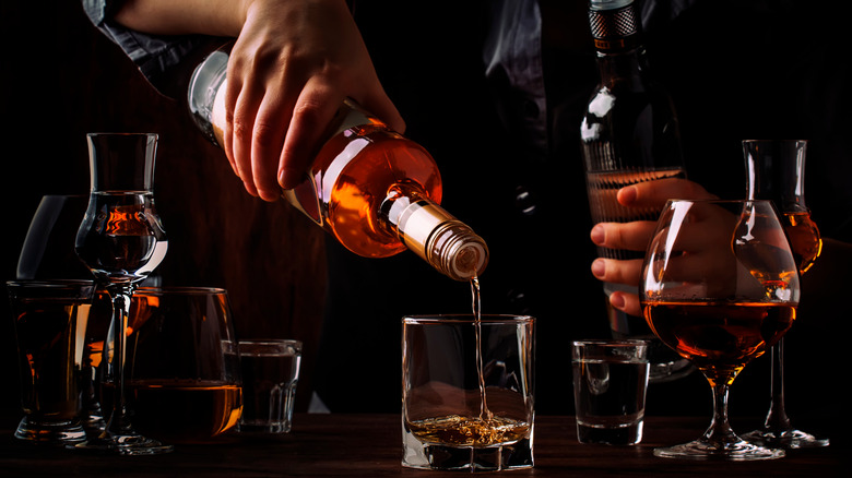 For liquor like bourbon, aging is one of the primary requirements for product designation. To be labeled as bourbon, the spirit must be aged in charred American oak barrels for a minimum of two years and must have an age statement if it's under four years, via New Riff Distilling. Scotch similarly must be aged in oak barrels for a minimum of three years, via Scotch Whiskey Association. Tequila also has a handful of general age indicators, while blanco tequila is unaged, reposado is "rested" in barrels for a minimum of two months, and añejo tequila is barreled for at least a year, according to Difford's Guide. Rum is another primary spirit that also features an age statement, but given the vast diversity of rum, that age statement might not always be the best indicator of quality.