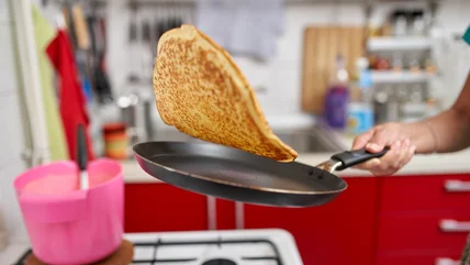 Once your perfectly divided pancake batter makes it into your skillet, you need to know how to tell when it times to flip it. After all, your flawless flipping technique will go to waste if you turn over your morning meal too early. According to BBC Good Food, your flapjack is generally ready for flipping after one minute has passed. Although, you should check that the batter has started folding inwards before you fully commit to turning it to the other side. After all, signs show the bottom half is cooked, you can then flip your breakfast without your wrist and with great confidence.