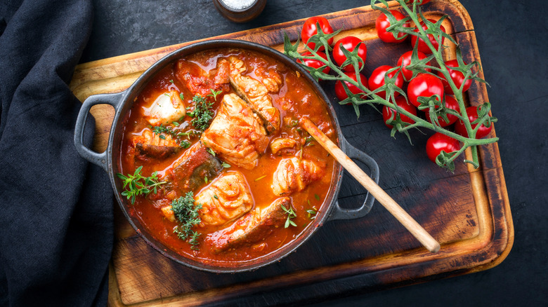 When it comes to recommendations as to what not to cook in your cast iron, tomatoes often sit at the top of the list. As HuffPost reports, foods that are high in acidity are notoriously bad for cast iron for multiple reasons, including the reaction that can occur between the high acid and the iron, which can both damage the cookware and lend your food a nasty metallic tang. Seeing how tomatoes are a highly-acidic food and they're so common in the average kitchen it's easy to see why they've gotten a bad rap when it comes to cast iron cooking. But is this notoriety deserved?