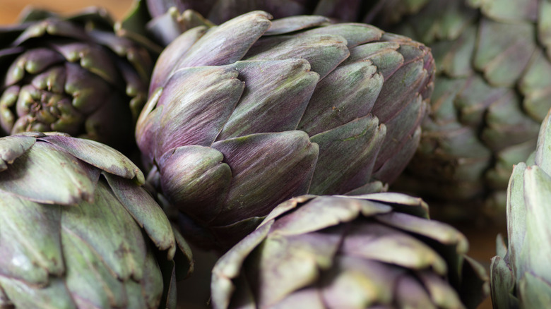 Artichokes are an especially nutrient-dense vegetable that's high in fiber and low in calories. One medium artichoke has 60 calories and nearly 7 grams of fiber, which is 25 percent of the daily value (via MyFoodData). Eating plenty of fiber keeps your gut healthy and your digestive system in tip-top shape (via Mayo Clinic). Fiber also helps control cholesterol levels by reducing unhealthy low-density lipoprotein (LDL) cholesterol in your bloodstream.