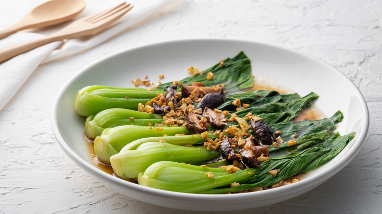Both varieties have an impressive nutritional profile. Two cups of bok choy have only 18 calories, yet offer 70 percent of the DV for vitamin C (via MyFoodData). That's almost the amount found in one medium orange. Bok choy is also a rich source of folate, a B vitamin that is crucial for healthy fetal development and may reduce the risk of certain cancers (via NIH). Getting enough folate can also be protective against depression.