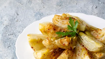 That's all great, but how in the world do you prepare it? It's easier than you think. You can quarter and saute some fennel bulbs with a little olive oil and garlic for a simple side dish that's ready in 30 minutes. Or, use a mandolin to thinly slice them and make a fresh shaved fennel salad tossed with romaine lettuce, orange, grapefruit, and avocado. Top it with an Asian-inspired soy-mirin-sesame-sriracha dressing and get ready for a flavorful impression.
