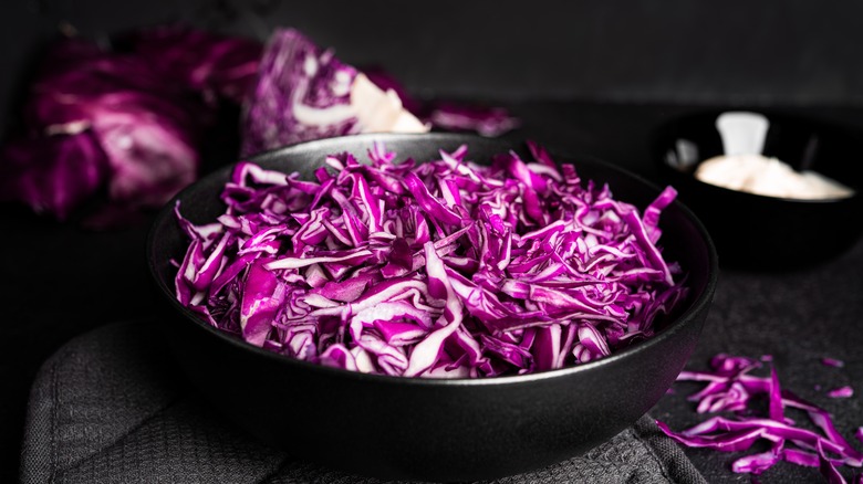 With its deep magenta hue and tightly packed leaves, it's easy to mistake radicchio for red cabbage. However, they have very different flavors and textures. Radicchio is a member of the chicory family, which also includes various types of lettuce and dandelions (via Food & Nutrition). All members of the chicory family contain a special type of carbohydrate — an indigestible fiber called inulin. Inulin is a prebiotic that feeds the beneficial bacteria living in the gut and promotes a healthy microbiome. Microbiome health is linked with a strong immune system and reduced risk of disease, including bowel disorders and certain cancers (via Harvard T.H. Chan School of Public Health).