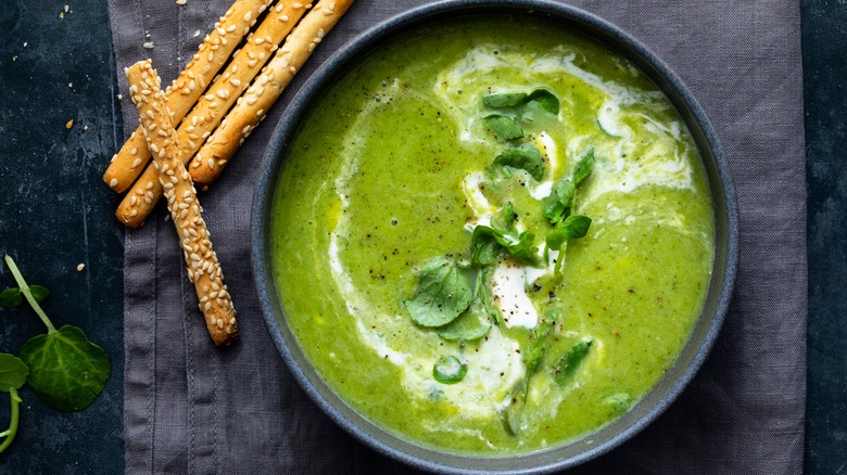 If you like arugula, you have to try watercress. This leafy green cruciferous vegetable has a similar distinctive peppery flavor and is packed with nutrients. Watercress is rich in vitamin C, with one 3.5-ounce serving providing almost 50 percent of the daily value (via MyFoodData). Also known as ascorbic acid, vitamin C is a water-soluble nutrient that your body doesn't store (via NIH). So you need to get plenty from your diet each day. Vitamin C is integral to collagen production, healthy skin, and wound healing. Watercress also provides high levels of antioxidants that can help fight free radicals and lower the risk of certain cancers (via WebMD). It's also a good source of the minerals calcium, magnesium, and phosphorous, all three of which are crucial for healthy bones and the prevention of osteoporosis.