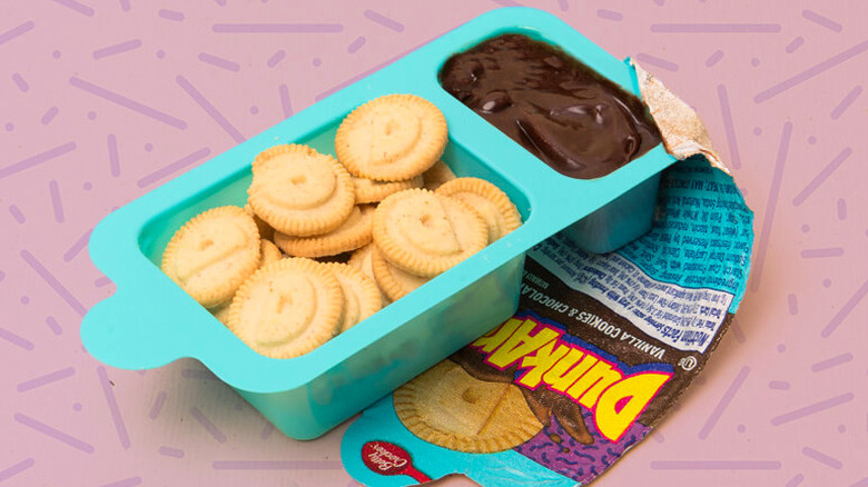 Dunkaroos were the epitome of junk food. This prepackaged snack came in a tiny plastic container housing cookies and icing to dip them in. One small package of Dunkaroos contains a massive 13 grams of sugar. It's enough to have any kid bouncing off the walls, just like the product's kangaroo mascot, Sydney. Dunkaroos were released in 1992 with five different cookie shapes and your choice of chocolate or vanilla frosting. But after new flavors came out in 1993 – chocolate chip, cinnamon, peanut butter, and rainbow sprinkles — they really blasted off (via Newsweek).