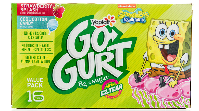 Regardless of this fact, GoGurt was still high in demand as soon as they made it to market in 1998 (via Mashed). In fact, TIME said GoGurt was "the fastest-selling yogurt product ever released," according to General Mills. GoGurt was super convenient — no spoon or clean up required. As their commercials pointed out, GoGurt is "the yogurt you squeeze and slurp, grab and glurp." The product seems to keep pumping out new themes and flavors that are irresistible to kids, like the Glo-Gurt that comes with glow in the dark Halloween decorated tubes, and creative flavors like Cotton Candy and the infamous Sour Patch variety that's based on — you guessed it — the Sour Patch Kids.