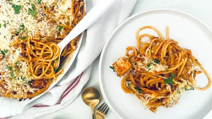 In our opinion, nothing is more comforting than a casserole. Recipe developer Deniz Vergara brings us this recipe for parm-style chicken spaghetti casserole. With spaghetti noodles, mozzarella cheese, chicken, and marinara sauce, this is the kind of dish that will please the entire family. The best part — it comes together in less than 45 minutes.