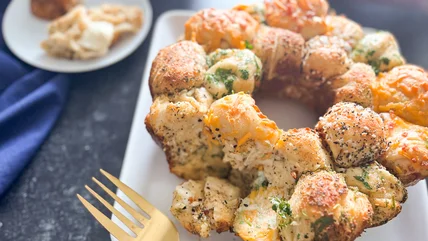 Once you have those items, you can make this cheesy, savory monkey bread.