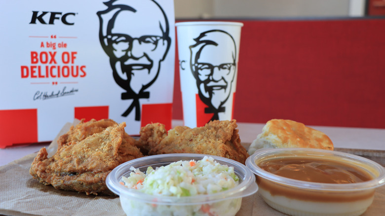 According to The Krazy Coupon Lady, should you find yourself at a place where chicken tenders are served alongside cups of Baja Blast, then you may be inclined to try a few "secret menu hacks." One such "hack," for example, is to order a packet of sour cream from Taco Bell (estimated to be around 70 cents) and then add the sour cream to any potato dish at KFC. For 85 cents, you could also order a side of shredded taco cheese and add that to whatever KFC entrée you choose, be it biscuits, tenders, drumsticks, or the famous bowl.