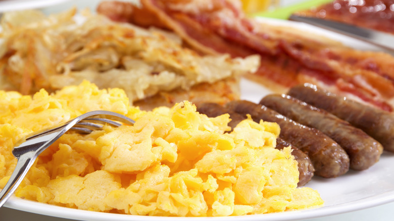According to The Atlantic, breakfast was frowned upon in medieval times for its indulgences, even being considered a form of sinful, self-destructive gluttony. But the outlet adds that morning meals helped make breakfast an accepted and even necessary part of industrialized America, and a celebrated fixture of the English upper-class lifestyle. Perhaps it was these conflicting ideals that eventually led to massive egg, meat, and batter plates, rainbow breakfast cereals, and sweets of all forms, like donuts, muffins, and sugary lattes.