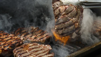 Don't have a lot of time to spare? Grill hanger steak. This steak is also known as the hanging tender or butcher's steak. It comes from the section underneath a cow's ribs, serving the purpose of keeping the diaphragm attached to the ribs. When butchered, the hanger steak has a thick line of connective tissue running down the center, which some butchers remove to form two pieces of meat (per the University of Minnesota Extension).