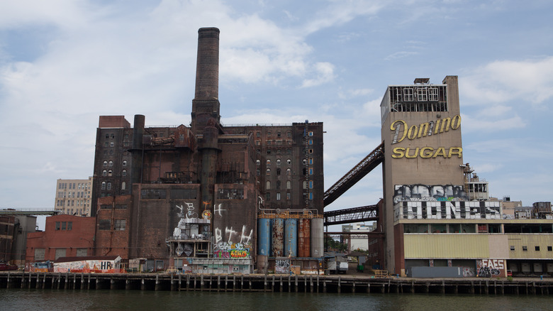 The Domino Sugar Refinery, which operated in Brooklyn's Williamsburg neighborhood for over 150 years, was built by the wealthy Havemeyer family's Sugar Refineries Company in 1855 and went on to become the largest industrial sugar factory in the world (via Smithsonian Magazine). The Domino Sugar Refinery was processing over half of American sugar by the 1920s, close to 4 million pounds a day. The factory closed in 2014 and was photographed by famed industrial and urban photojournalist Paul Raphaelson before eventually being partially demolished and made into a housing and commercial office project (via The Atlantic).
