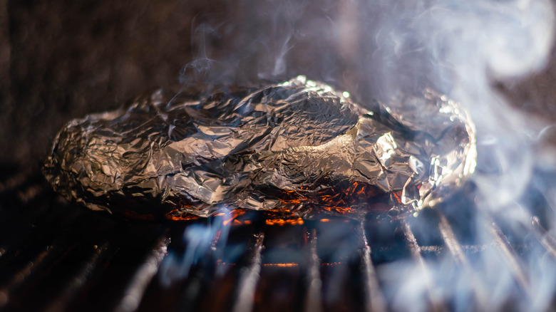 Even if you don't own a smoker, it doesn't mean you can't smoke meat and other foods. In fact, aluminum foil is a great grilling aid because you can make a DIY smoker with it. A pile of wood chips, aluminum foil, and a BBQ grill is the way to go with this. Don't get ahead of yourself and stick dry wood chips in the foil; make sure to soak and drain them beforehand. Create a wood chip-filled foil sack and poke a few holes in the top before you transfer it to your BBQ. Keep the foil pouch in one of the grill corners while you cook the food.