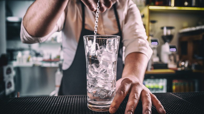 As Cocktail Crate explains, it's crucial to be consistent when stirring — many factors can mess up that consistency. For example, the longer you stir, the more diluted your drink will become, and the faster you stir, the faster your drink will be diluted. And the size of the ice is essential: the more surface area that the ice covers, the quicker the drink will chill (and, as a result, dilute). And even the type of glass you use makes a big difference, as a glass chilled in the freezer will get you a head start on chilling and ultimately dilute the drink less.