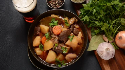 While you could probably use any beer in this recipe, Guinness is the Irish culinary go-to. "When you cook a Guinness, the alcohol tones down to a sweet sugar, but then you have the bitterness of the hops, so it's a sweet and sharp balance. The best of both worlds, but not too overpowering," Guinness Storehouse executive chef Justin O'Connor told ABC News. "When you're cooking with any other beer, the lingering taste just doesn't last with an ale. But Guinness gives it that body. Toward the end of cooking, I add a little bit and it just brings everything back to life." And if there's any Guinness left over, raise your glass, toast St. Patrick, and take a drink.