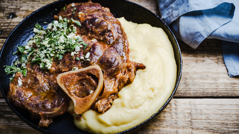 But let's back up a second ... what exactly is gremolata? Gremolata is a classic Italian condiment that's typically made up of only three ingredients: fresh parsley, garlic, and lemon zest (per Cookie and Kate). This finely chopped citrus-herb-garlic garnish is traditionally served with the Italian veal dish osso buco, but it can be used to brighten up the flavors of any type of dish, from lamb to seafood and soups to stews.
