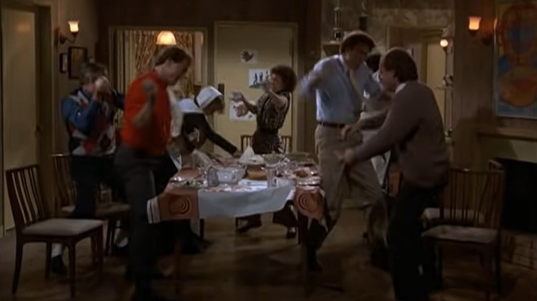 It was supposed to be a nice and quiet Thanksgiving dinner, but throw the "Cheers" cast into the mix, and an argument, or several, was bound to ensue. This particular happy holiday evolved into a food fight. "Cheers" is about a rag-tag lot that works or hangs out at a Boston bar "where everybody knows your name." The series ran for 11 seasons from 1982 to 1993.