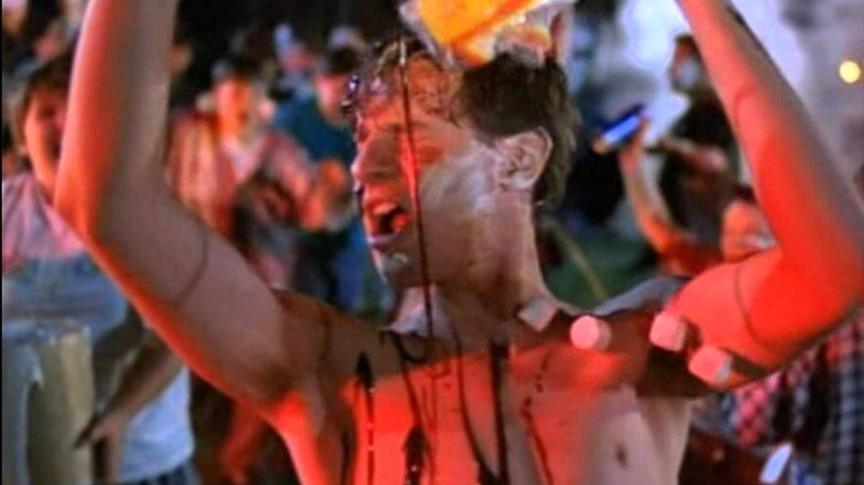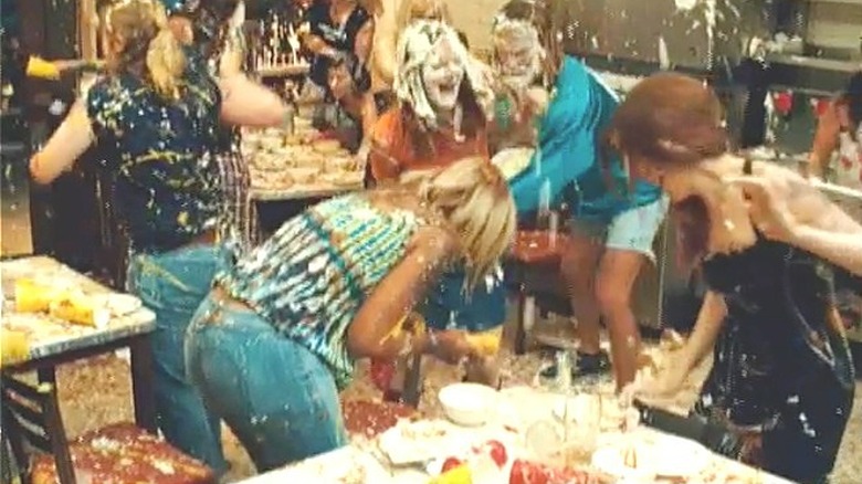 NPR reports that some of the earliest silver screen food battles are derived from the silent films of the 1900s, where pie fights were used as a form of physical comedy. Today's onscreen food fights can express a multitude of things. These produce and carb skirmishes can ensue as an act of celebration, rebellion, revolt, violence, or just some plain old fun. We've ranked the most epic food fights ever to grace the big and little screens.