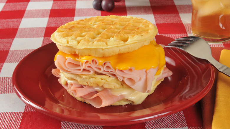 Next time you're short on sandwich bread, take a look at your freezer. Waffles are the perfect substitute — simply take two waffles and fill them with your favorite fixings. You can use this trick to make a wide range of sandwiches — they don't have to be limited to breakfast sandwiches. For example, make classic sandwiches like grilled cheese or PB&J. The waffle has a sweet undertone, but not so much that it clashes with more savory stuffings. The sugary and salty elements actually play off each other quite well.