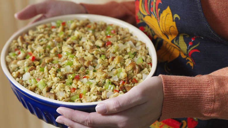 Odds are that you probably haven't thought to use waffle crumbs in your stuffing, but it's undoubtedly something you need to try. Although many folks view stuffing as a holiday-only food, it's tasty and deserves appreciation at other times of the year. So go ahead and use this as your excuse to make some. Instead of using regular breadcrumbs or pieces, replace the bread with the waffles — entirely, or just a portion.