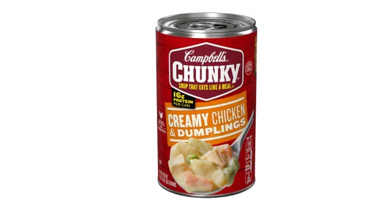 Though the name seems contradictory, Chunky, Creamy Chicken, and Dumplings is one of the better soups that Campbell's makes. The soup is a part of the Campbell's chunky variety, but it features a smooth base.