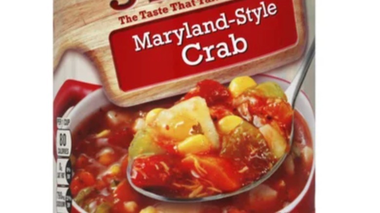 The Maryland Style Crab soup is one of the rare seafood-based soups offered by Campbell's. This is a condensed soup, but it is also one that requires thorough cooking before consumption because not all of the ingredients are pre-cooked. This soup is made with real crab meat mixed with potatoes, peas, cabbage, red peppers, and leeks. The ingredients all come together in a tomato broth that is seasoned with mustard, paprika, and garlic. The soup is a favorite of those on the Eastern seaboard, and though it requires cooking, the preparation required is minimal.