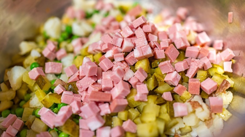 If you like egg salad, tuna salad, or chicken salad sandwiches, this is a clever and delicious way to switch it up. Bologna salad follows many of the same steps you use to make these other dishes, including dicing up the protein and combining the ingredients with an emulsifier, such as salad dressing. The end result is a creamy and flavorful mix that definitely makes for a satisfying snack or sandwich filling.