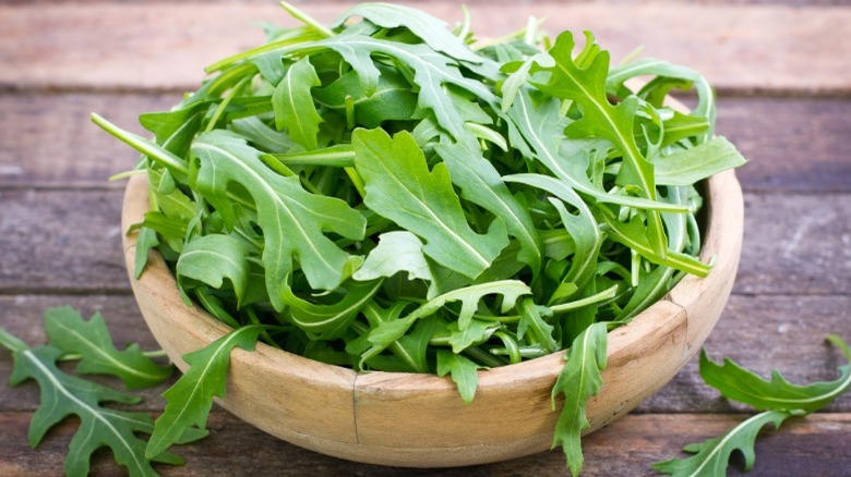 On top of the texture and flavor boost from arugula, you'll also get a good dose of nutrition from this leafy green. According to Medical News Today, arugula is packed with polyphenols, antioxidants, and vitamins that can lower your risk of developing cancer, osteoporosis, diabetes, and heart disease. All the more reason to pile it on!