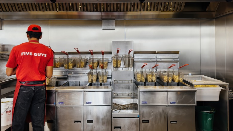 While ordering a small serving of the fries will help you cut down on extra fat and calories, you'll be glad to know that all of Five Guys' fries are fried in cholesterol-free peanut oil. While peanut oil isn't all good, it does come with a few health benefits. As Healthline explains, peanut oil boasts high levels of Vitamin E, monounsaturated fat, and polyunsaturated fat, of which the latter two may help reduce cardiovascular disease while possibly improving blood sugar.