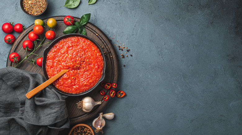 Your very first idea when thinking about how to dress up plain noodles might be a timeless classic: tomato sauce. And if you have a jar of store-bought sauce on hand, you're well on your way to a tasty dinner. But if you have a few extra minutes — maybe while the pasta simmers — a bit of doctoring-up can take your favorite jarred sauce to a new level.