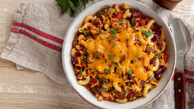 If you love Tex-Mex burritos and tacos, why not apply those same beloved flavors to pasta? The classic flavors and ingredients include dried ground cumin, ground beef, black beans, and grated cheddar or Monterey jack cheese. Notably, Tex-Mex cuisine also uses more wheat flour than traditional Mexican food, which means that pasta will fit right into the mix.