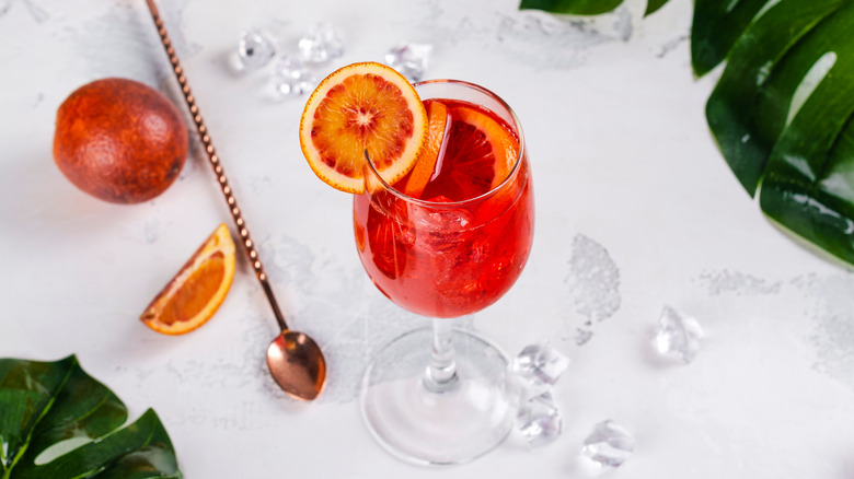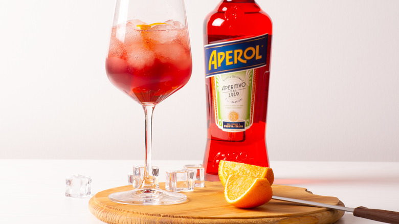 Vibrant orange, refreshingly cool, and just a touch fizzy, the Aperol Spritz is popular with hardcore mixology enthusiasts and casual imbibers alike. It's hard to imagine a more perfect summertime drink, a more invigorating sip after a long day, or a better brunch beverage. The Aperol Spritz is truly having a moment right now — although as Town & Country points out, the cocktail has been around for decades — but Aperol itself is much more than just a spritz ingredient. It's an impressively versatile liqueur that can be used in place of Campari, but has a personality all its own.