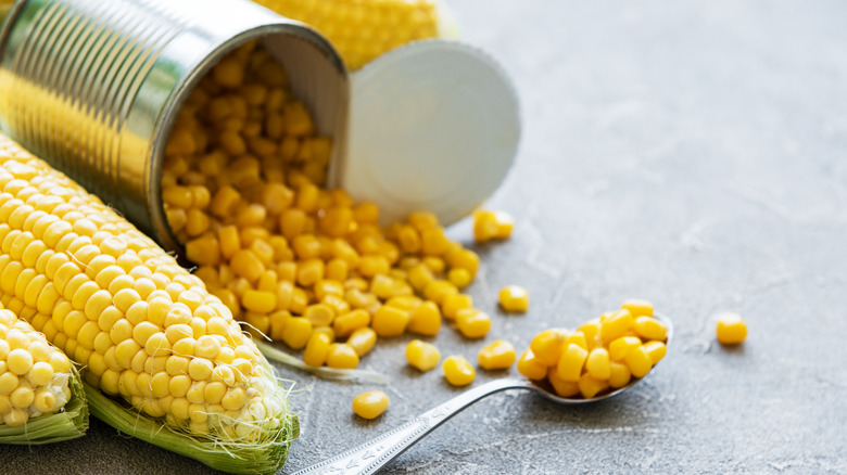 Although domesticated corn originated in Mexico about 9,000 years ago, the grain has since made its way across the globe. In fact, according to Statista, the Chinese now grow more corn annually than rice — not for human consumption, but for animal feed. Yet, adding sweet corn to traditional Chinese foods isn't foreign. Cornstarch is a staple for thickening sauces, and baby corn (predominantly grown in Thailand, Taiwan, and Indonesia) is commonly added to curries, stir-fries, and noodle dishes throughout Asia. These baby corn ears are often hard to come by in the U.S. The next best thing many of us have in our pantries is canned sweet corn, which makes it a natural addition to your homemade fried rice recipe.