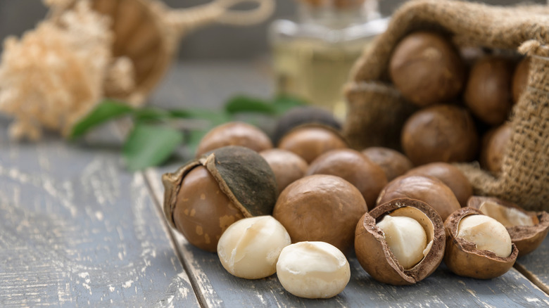 While macadamia trees are indigenous to Australia, they grow in nations throughout the Pacific region, particularly Hawaii. It's hard to imagine Hawaiian cuisine without the mighty macadamia. Its high-fat content and creamy texture pair beautifully with many other ingredients, chief among them seafood, making them ideal as an addition to shrimp fried rice. Just be sure to toast your macadamia nuts before use to draw their nuttiness out and to give them a crunchier texture.