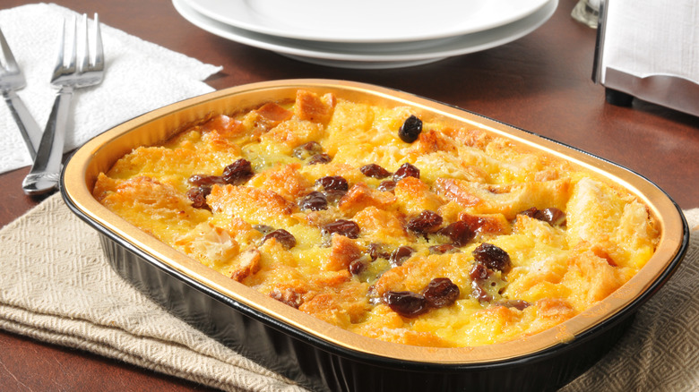 Bread pudding is a dish that has been around for centuries. The original recipes were actually developed as a way to avoid wasting bread that had gotten too stale to eat. To give it some new life and make it edible again, the bread was soaked in sweetened liquids and then baked. Because of its origins and its use in preventing food waste (which was more of a concern for those with less money), bread pudding used to be called "poor man's pudding." Over time, the recipes evolved, and now it is seen as a delicious meal for anyone — you may have even noticed that some upscale restaurants feature it on their menu.